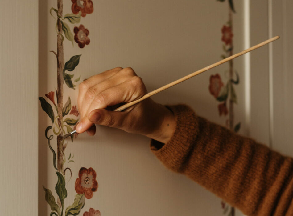 My work fell into a place a couple of years back when I was painting interior portraits of rooms for interior designers as well as clients. the escapism of actually wanting to be in those rooms and paint the walls and be part of a space was how I got into this decorative world. I trained 3 years ago through decorative artist Lizzi Porter on a project In London where she taught me her magic tricks of the trade. I’ve since worked with various interior designers such as Jane Churchill, Nina Campbell and Studio Duggan (and others) and collaborated with multiple designers. It’s been a busy year being up ladders however I am excited to learn more as I go along.