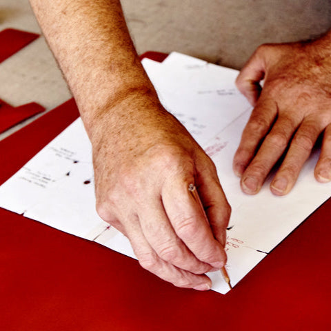 This skill goes hand in hand with splitting, which involves shaving a certain thickness off an entire pattern piece to create a lighter, more pliable finished product. The splitting requirement is different for every bag we make – even a millimetre too far can ruin an entire pattern piece.