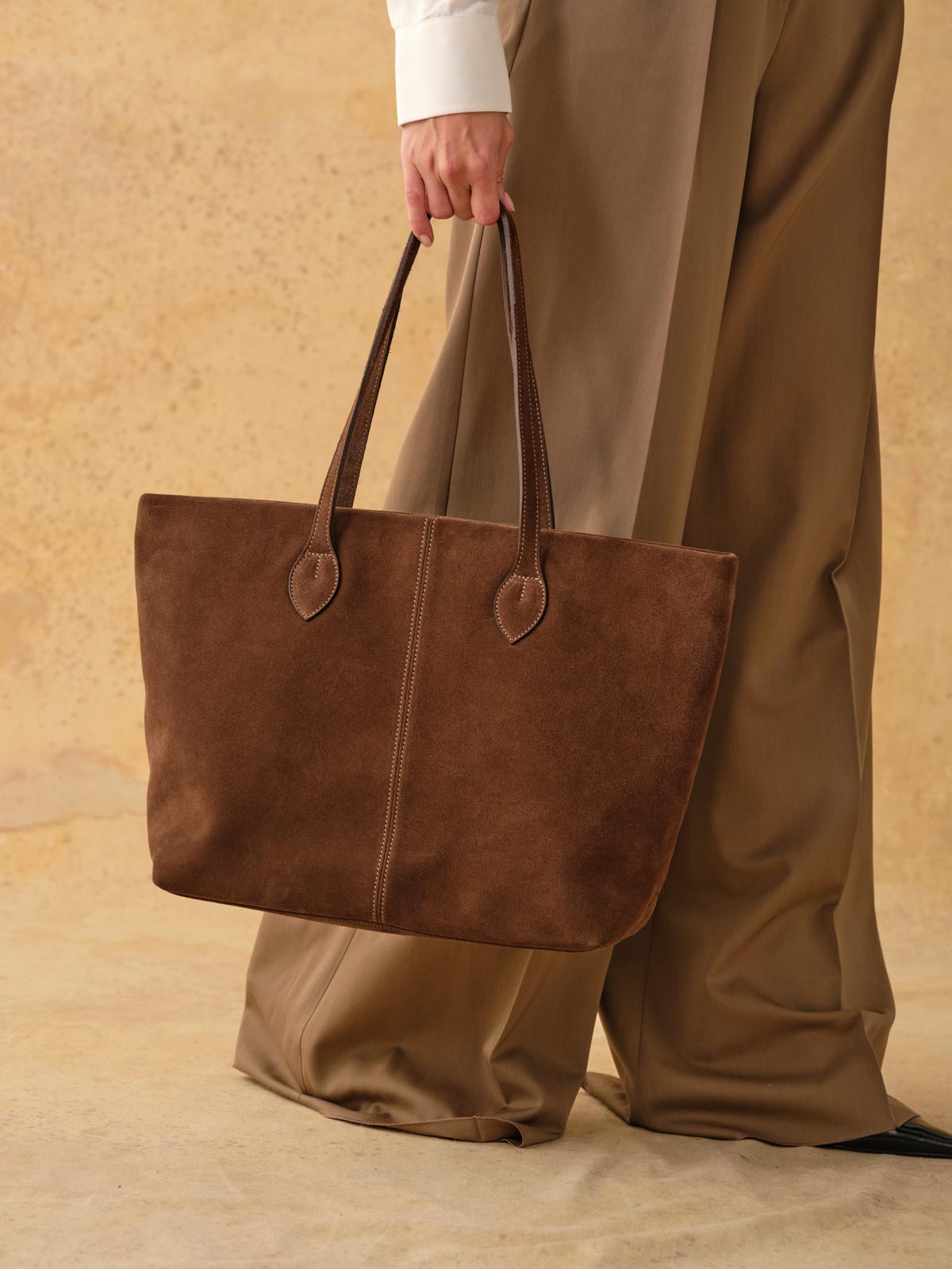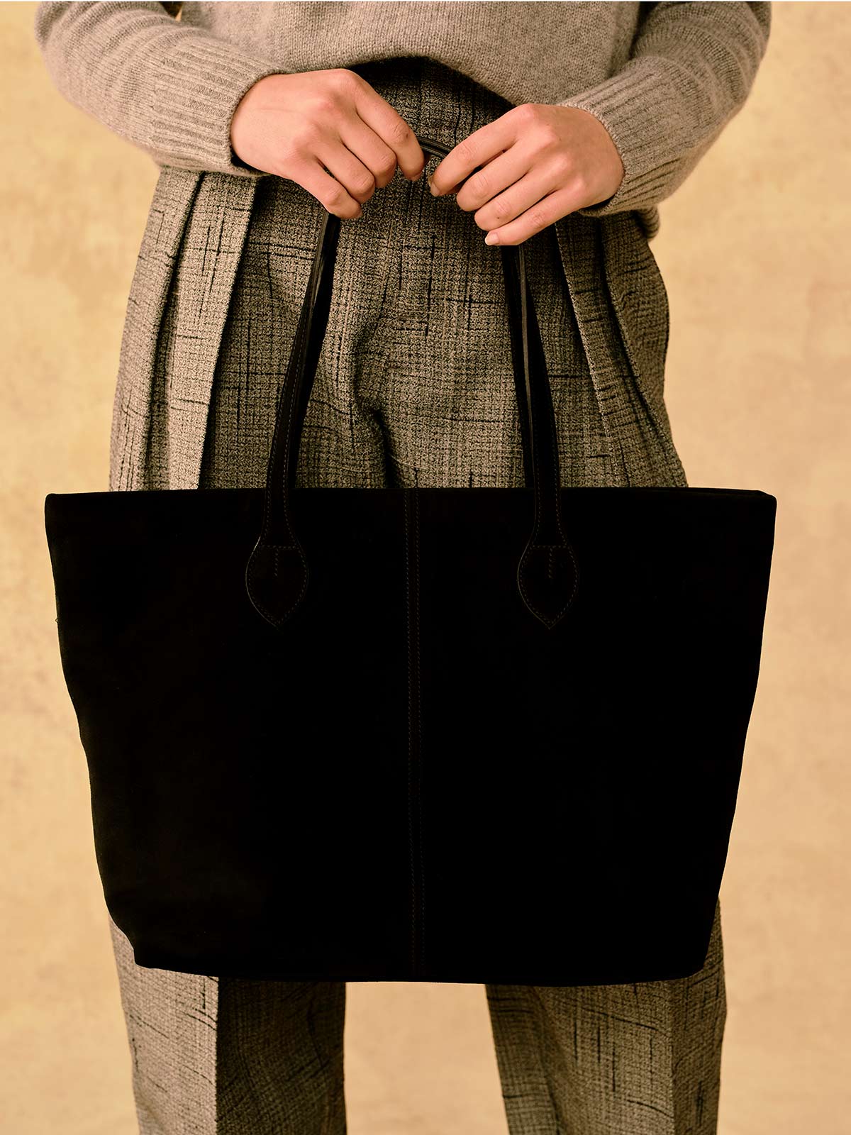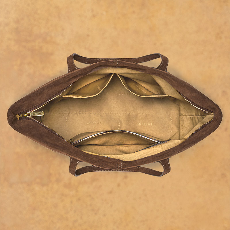 A softly structured piece of generous proportions, the Alice Tote is made from either exquisite Italian suede. Flat shoulder straps are the perfect length for throwing over an arm on the go. Delicate stitching, paired with the gentle slouch of this tote, deliver a look that is relaxed and smart all at once. It features a full lining in Tusting’s signature buff-coloured jacquard with an array of organisational features and a full-width, deep-set zip for security.