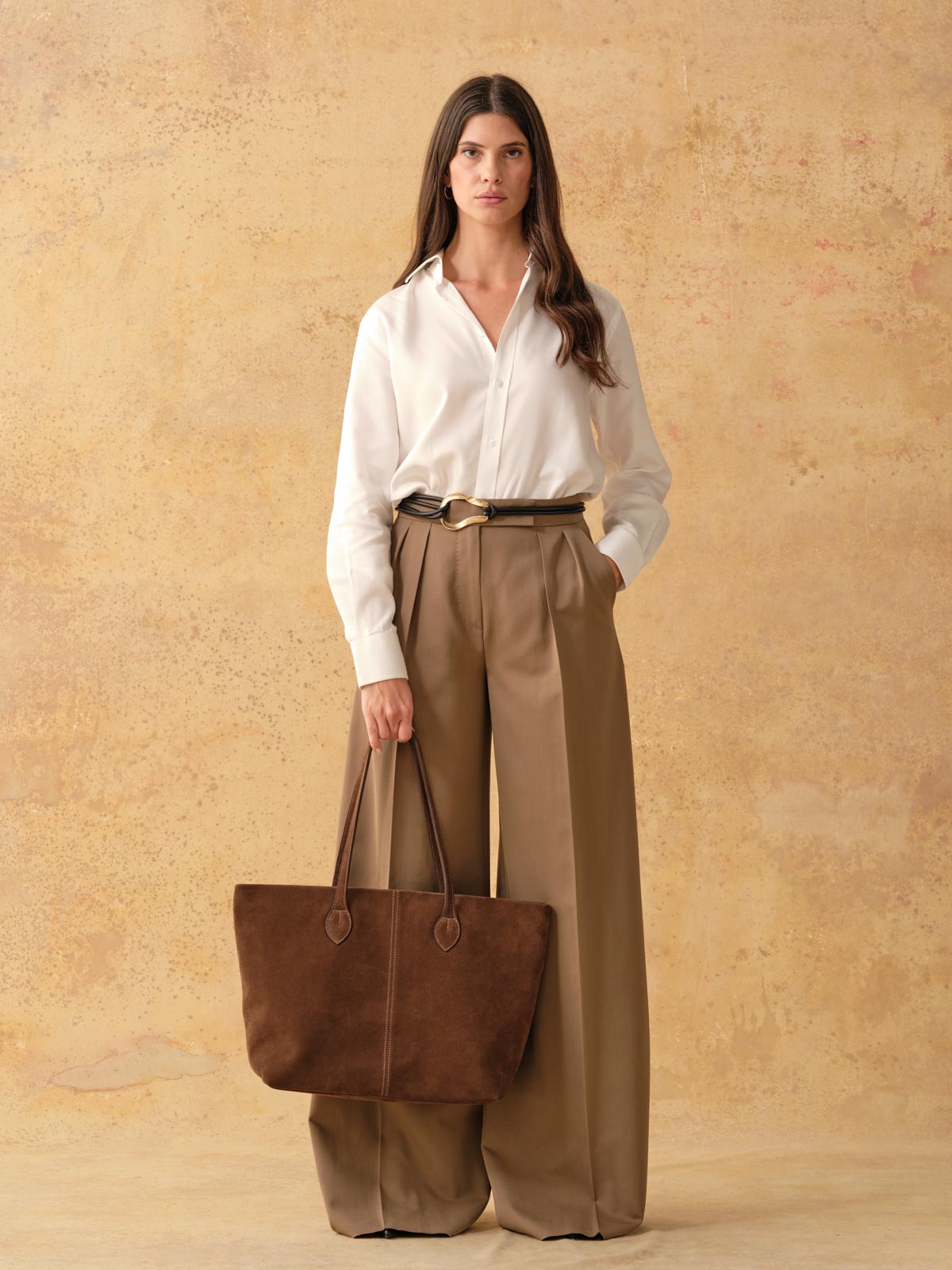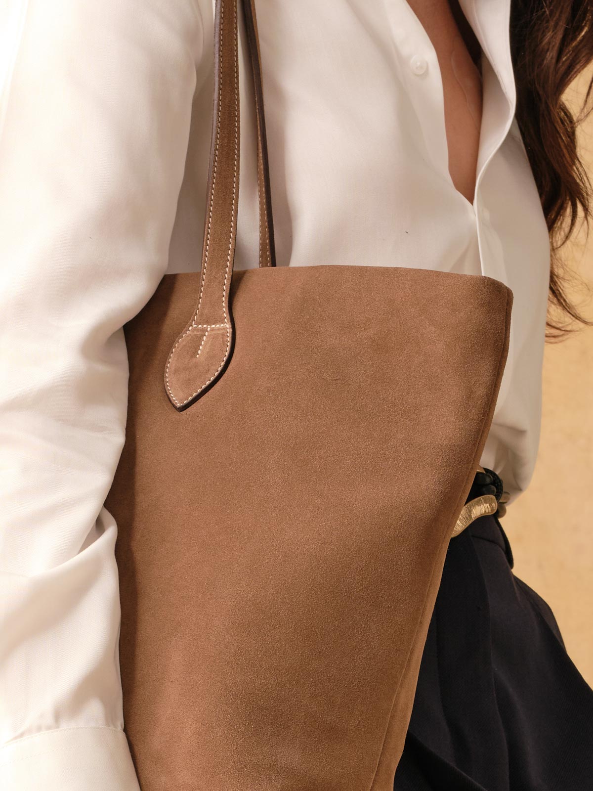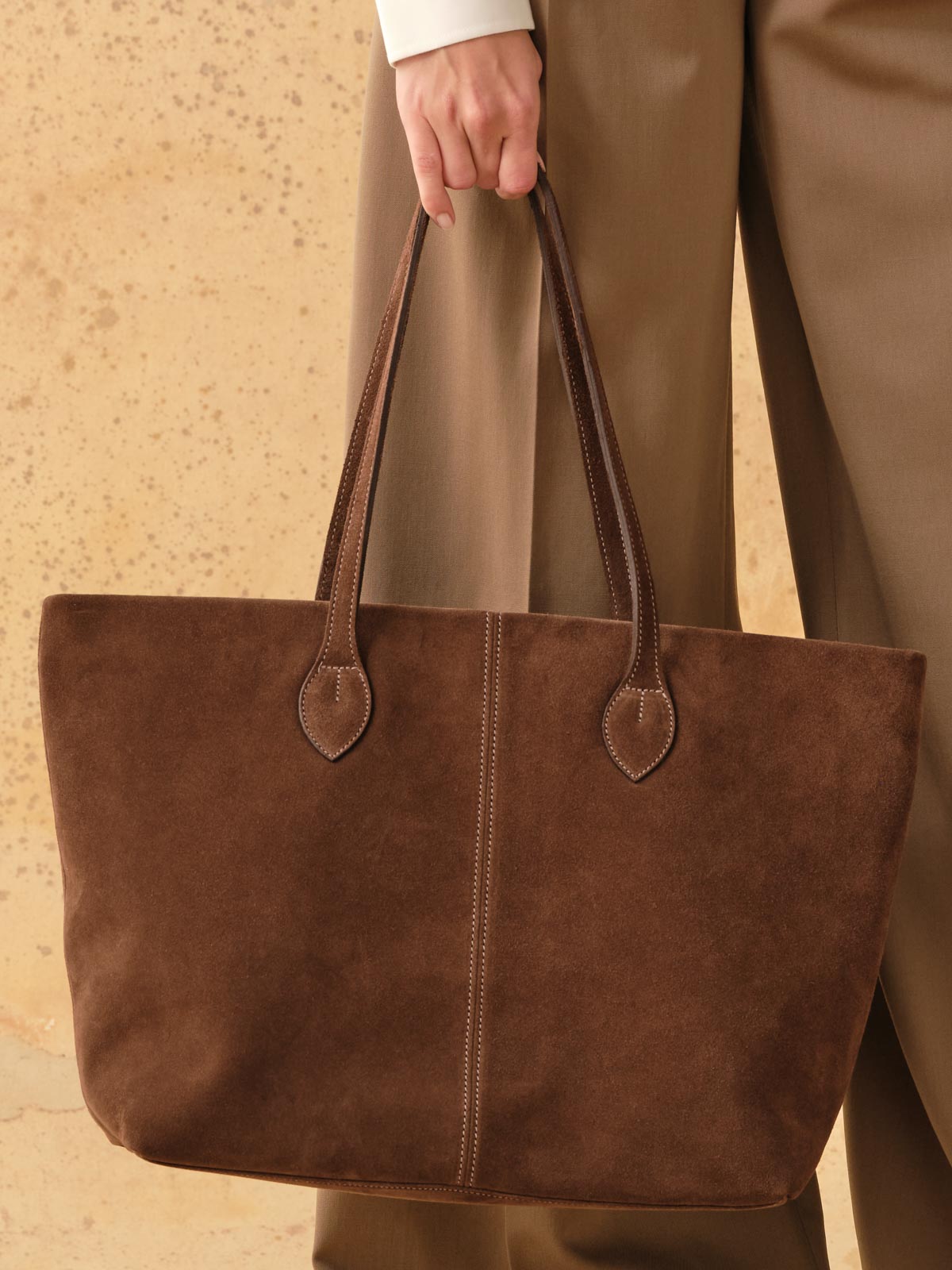 A softly structured piece of generous proportions, the Alice Tote is made from either exquisite Italian suede. Flat shoulder straps are the perfect length for throwing over an arm on the go. Delicate stitching, paired with the gentle slouch of this tote, deliver a look that is relaxed and smart all at once. It features a full lining in Tusting’s signature buff-coloured jacquard with an array of organisational features and a full-width, deep-set zip for security.