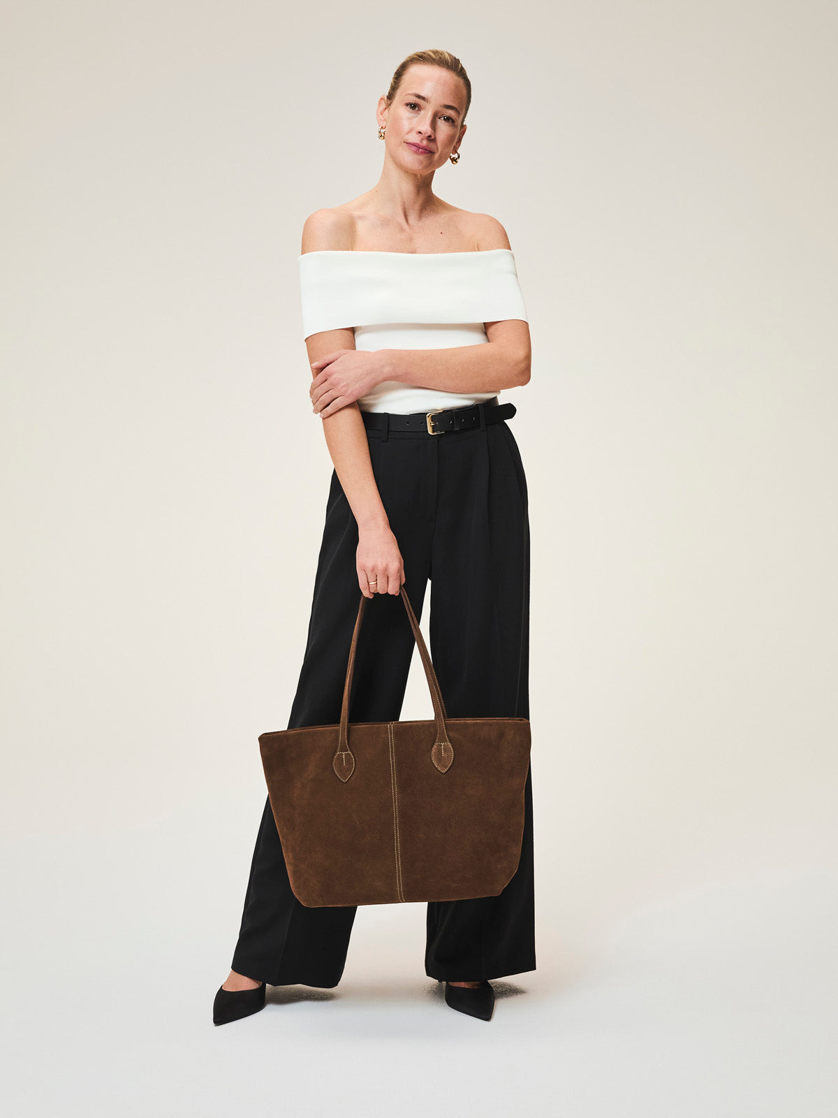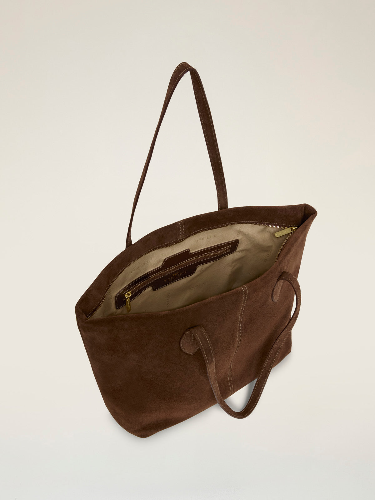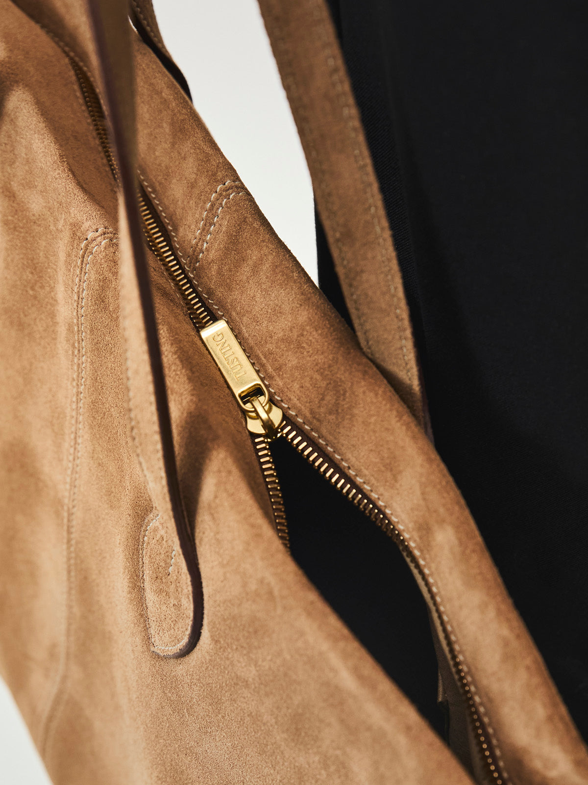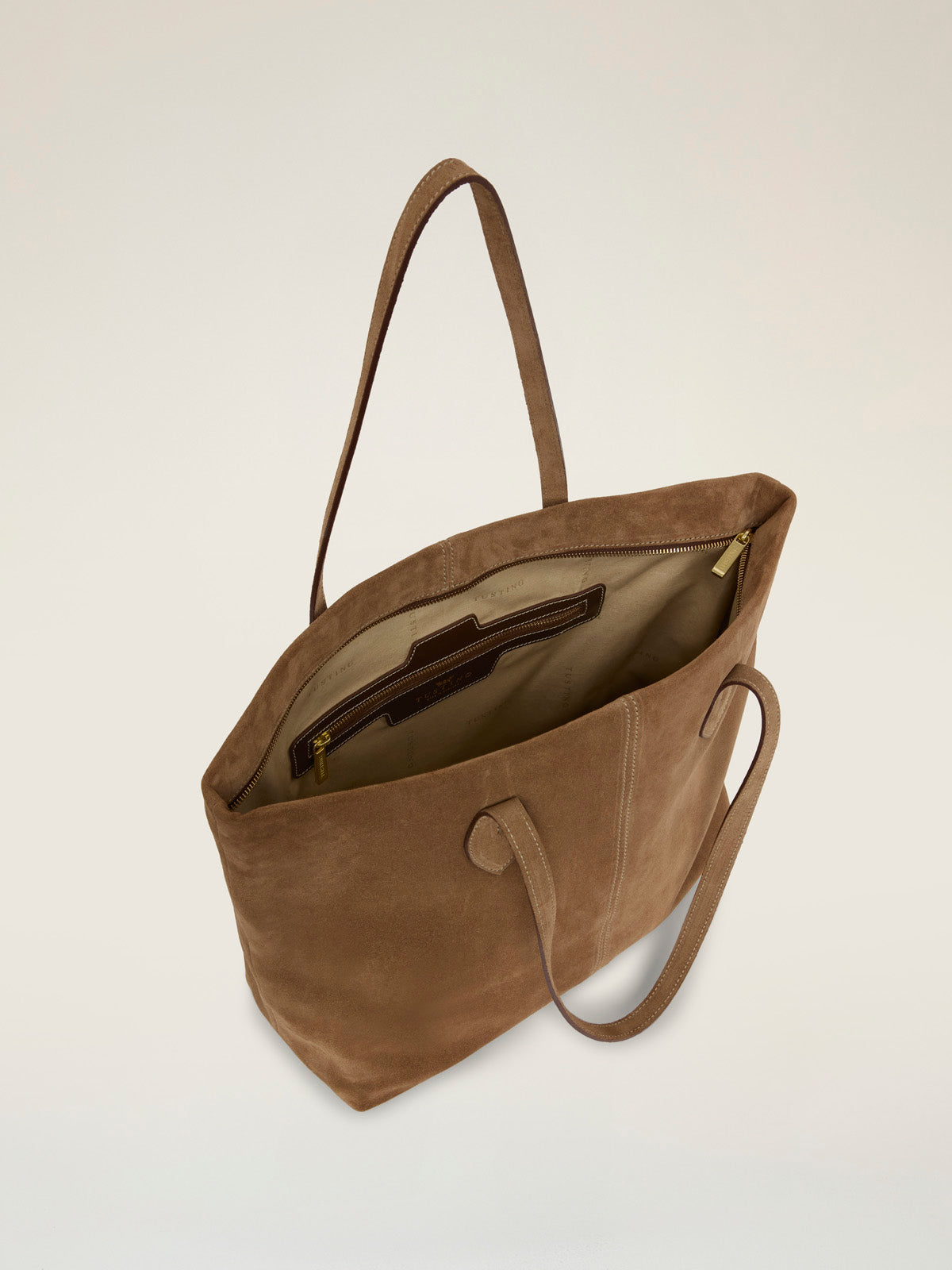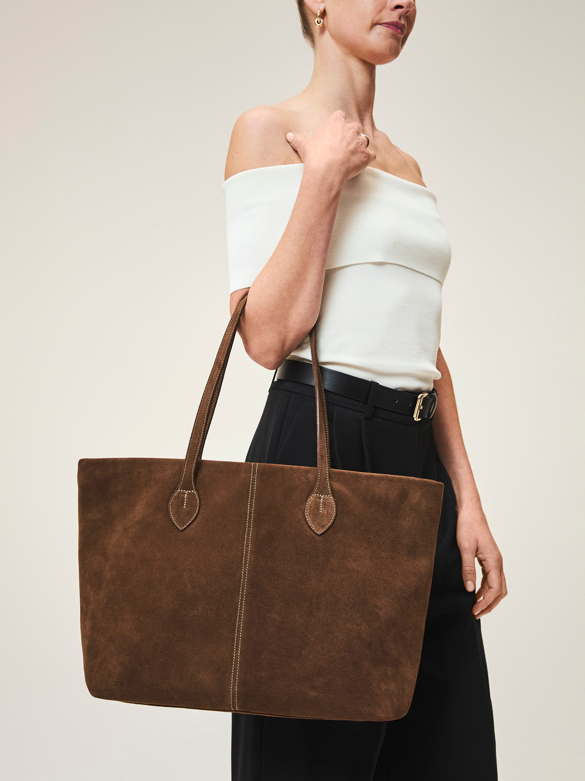 A softly structured piece of generous proportions, the Alice Tote is made from either exquisite Italian suede. Flat shoulder straps are the perfect length for throwing over an arm on the go. Delicate stitching, paired with the gentle slouch of this tote, deliver a look that is relaxed and smart all at once. It features a full lining in Tusting’s signature buff-coloured jacquard with an array of organisational features and a full-width, deep-set zip for security.