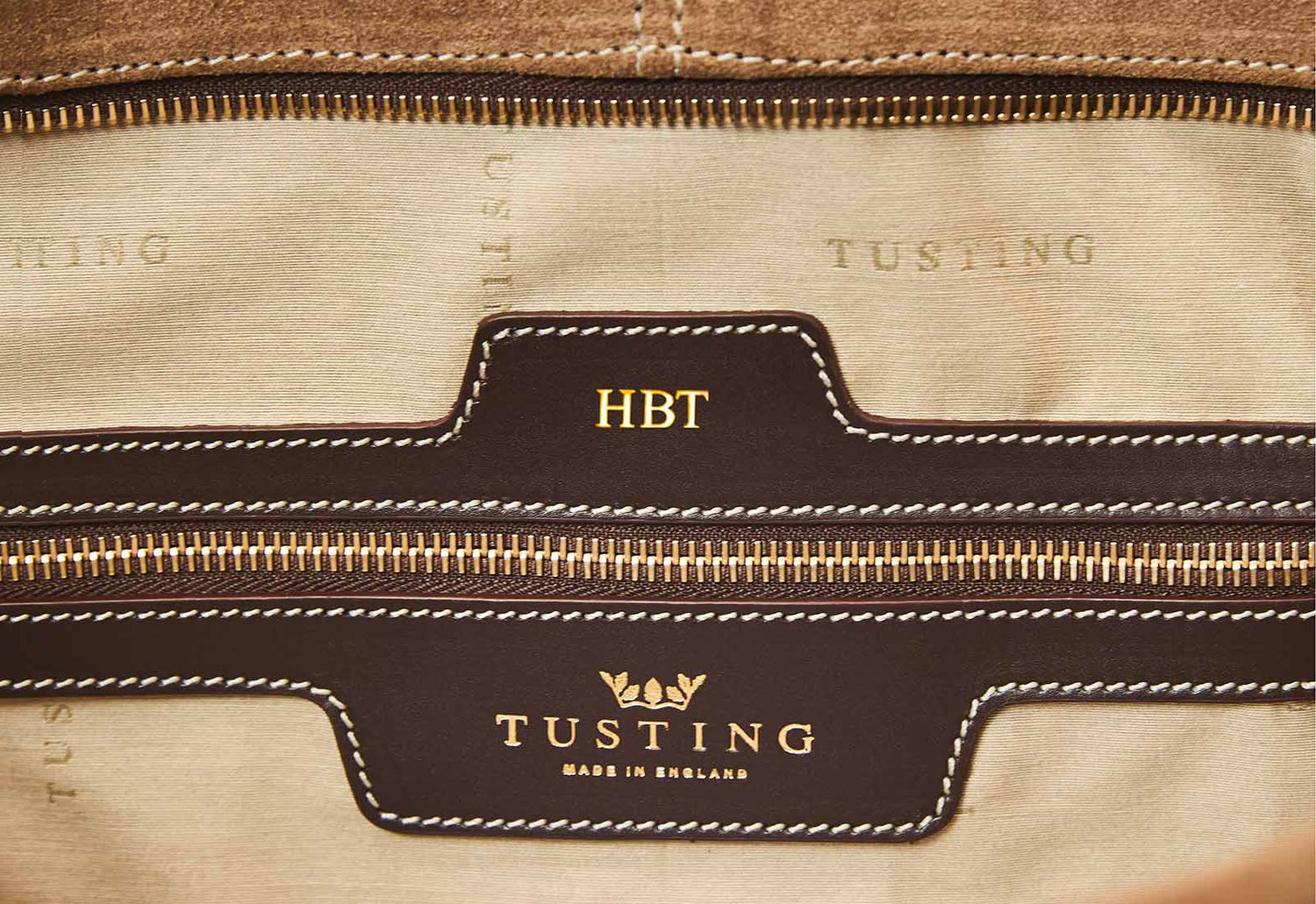 All Tusting bags are hand-crafted in our Lavendon workshop. By special order, we can make your bag even more unique by personalising it, or we can create a bespoke colourway from our set of leathers. So whether it is a personalised message inside the bag, embossed initials or a special colour combination, don’t hesitate to contact us.