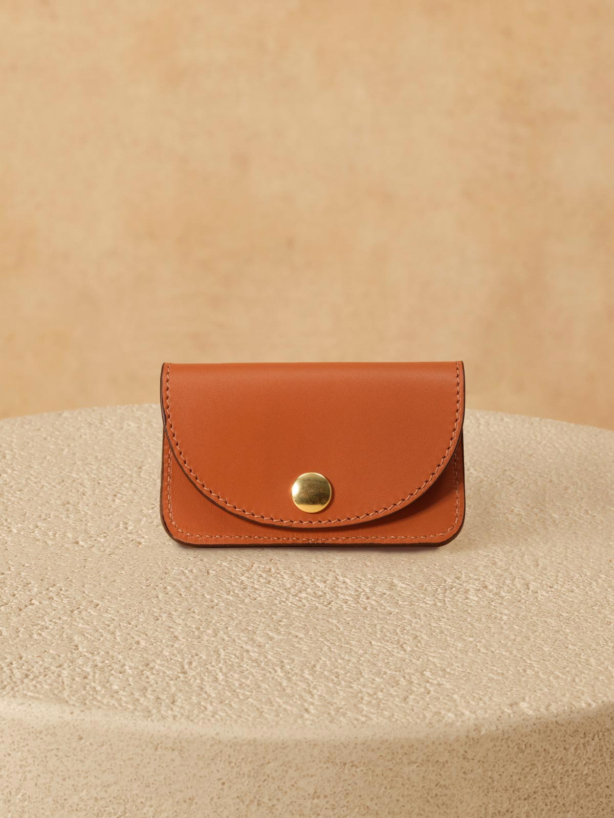 A simple but carefully crafted mini purse with a fold over flap with snap-stud to secure your loose change and cards. Made in soft full-grain leather, this is an elegant and durable option whose compact design allows it to fit neatly into the smallest of handbags.