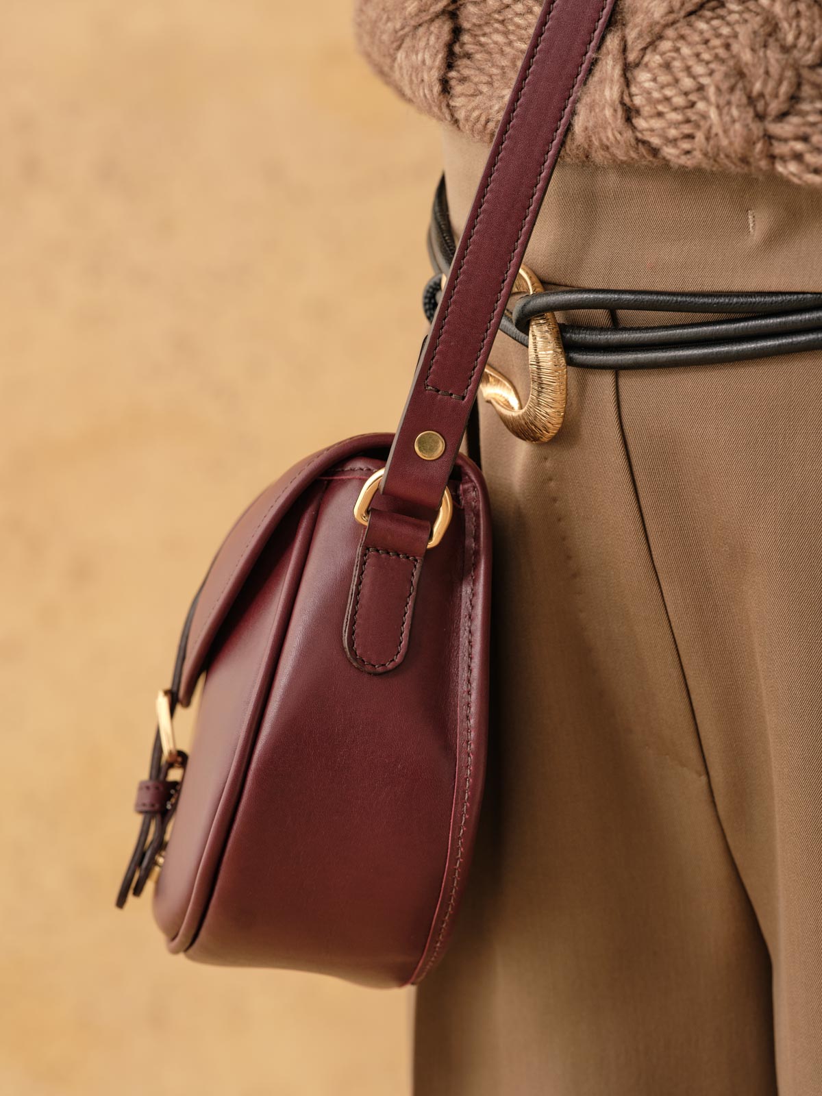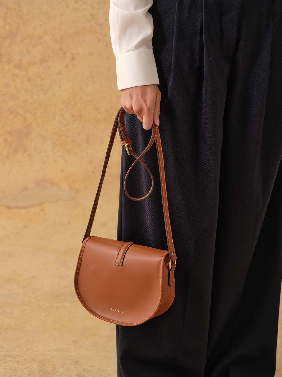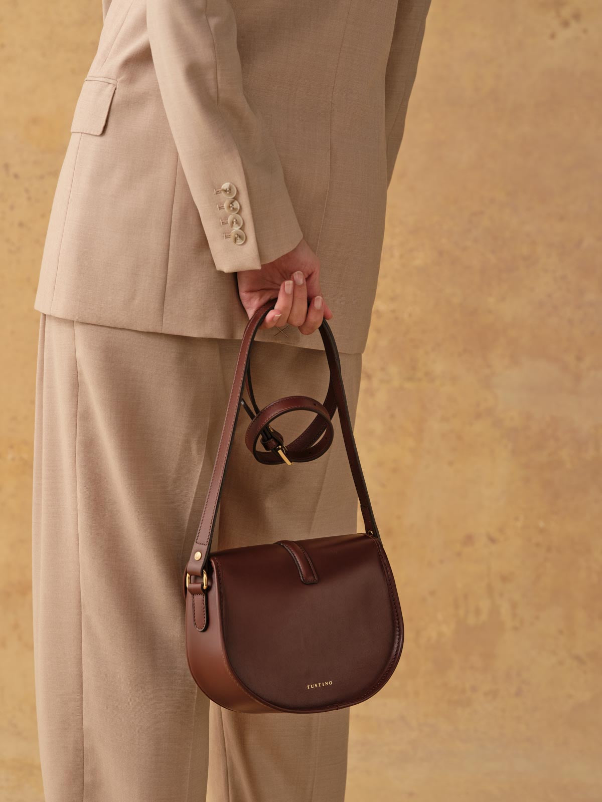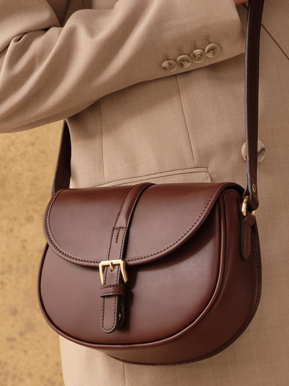 The Cardington is a classic design inspired by a traditional saddle bag. A rounded silhouette with easy access make this an ideal everyday companion. It snaps shut with a hidden magnet under the buckle and will fit your essential phone, keys and purse combination. Made from softly polished full grain leather and is lined in our signature Tusting jacquard.