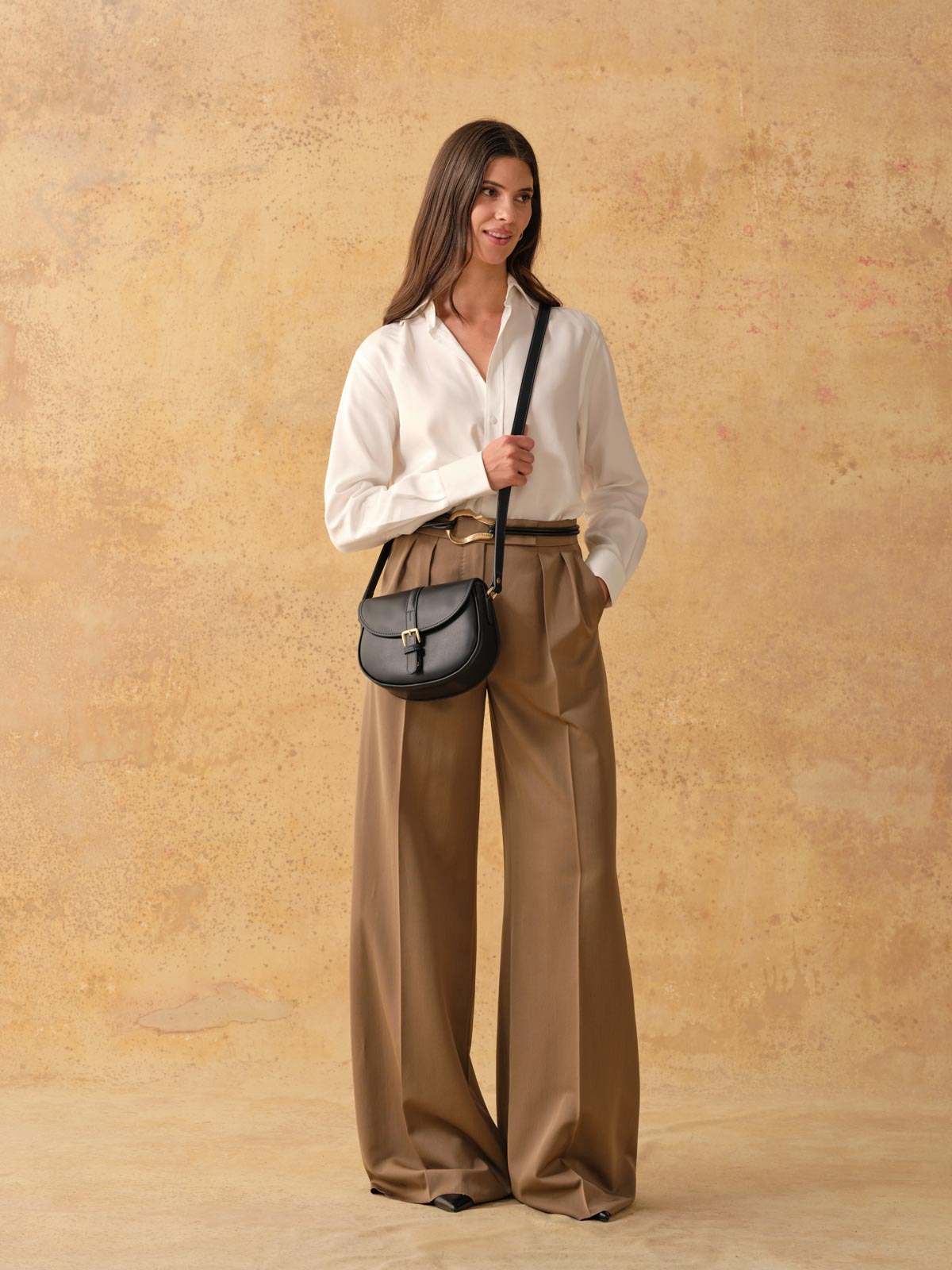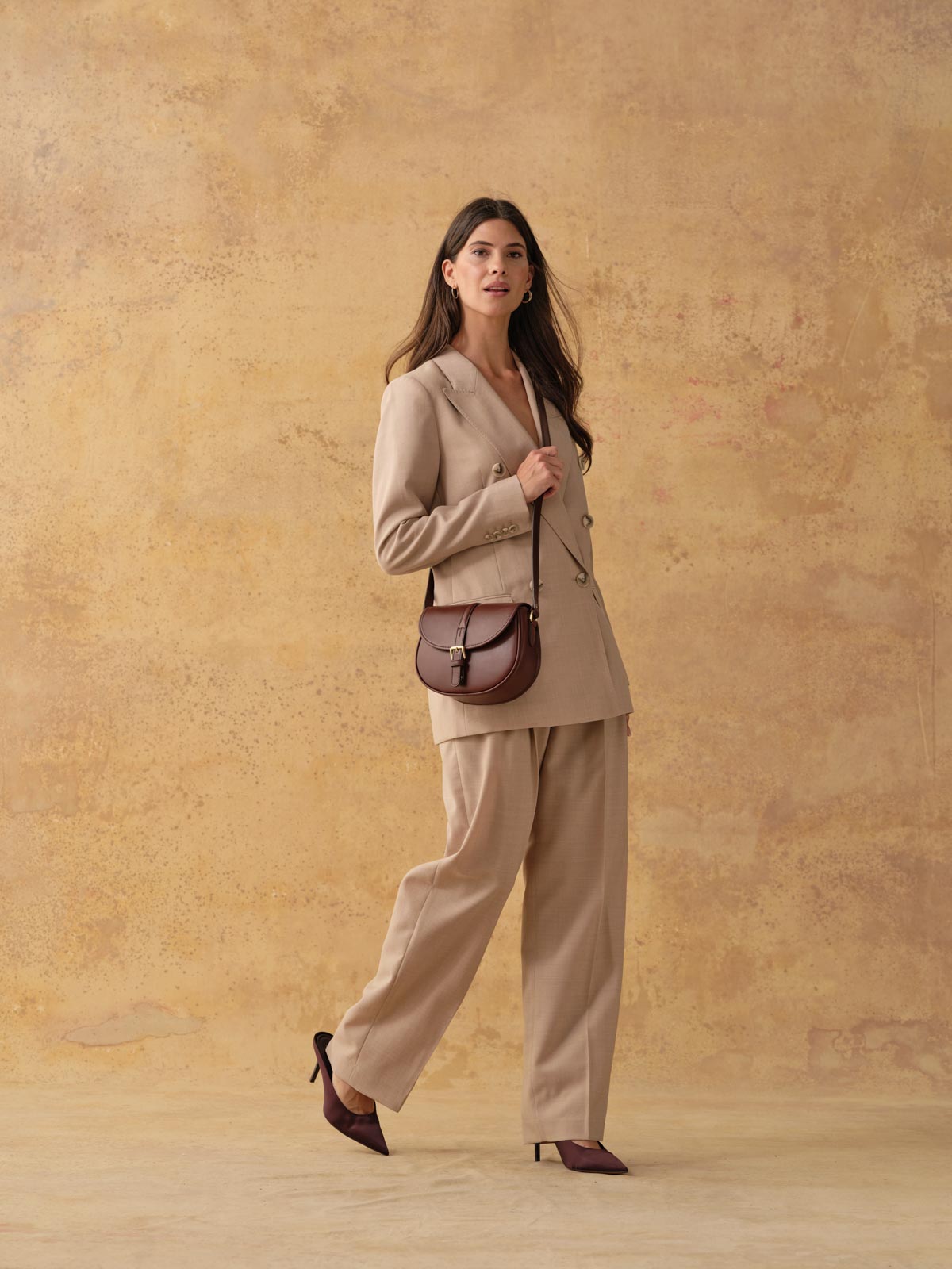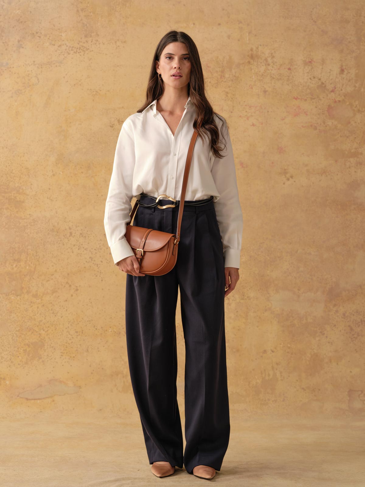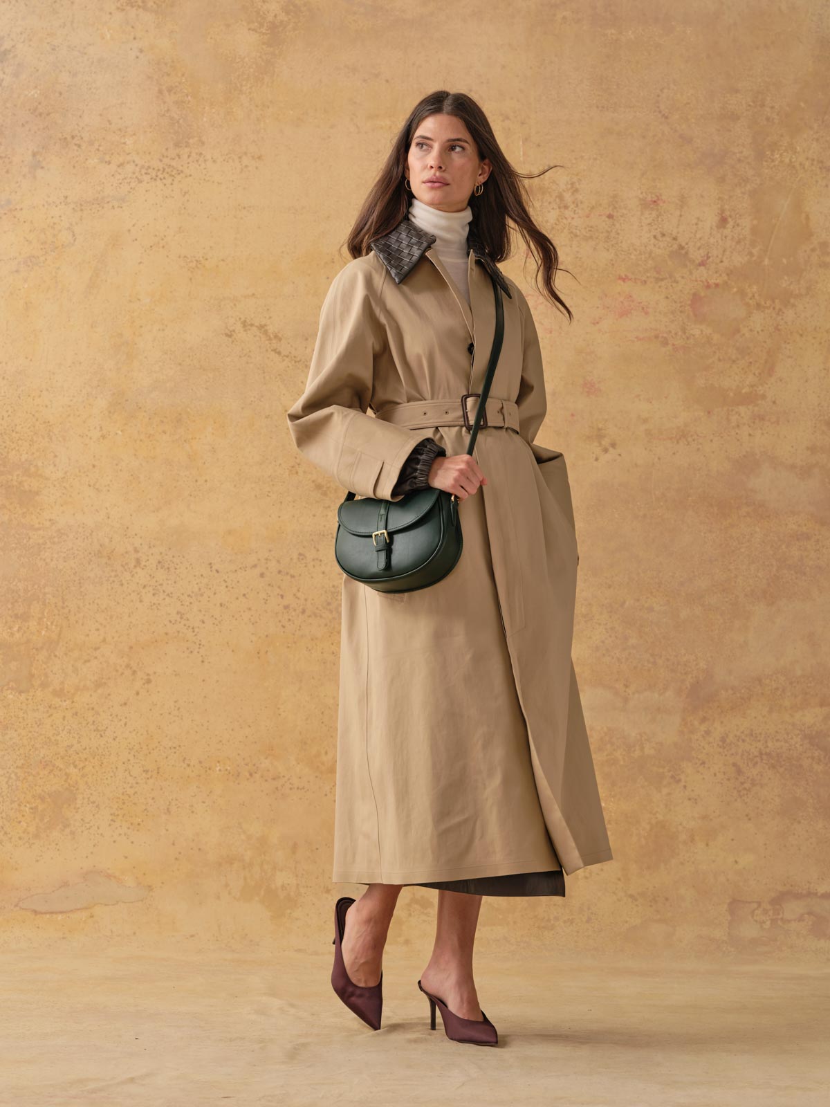 The Cardington is a classic design inspired by a traditional saddle bag. A rounded silhouette with easy access make this an ideal everyday companion. It snaps shut with a hidden magnet under the buckle and will fit your essential phone, keys and purse combination. Made from softly polished full grain leather and is lined in our signature Tusting jacquard.