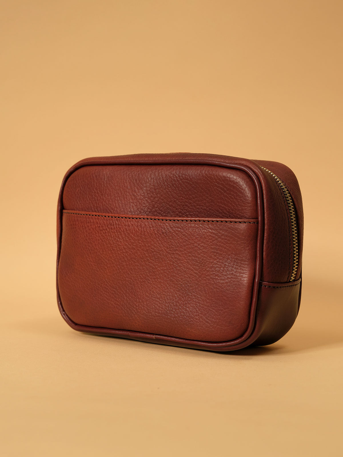 Our smallest washbag or Dopp kit, the Harrogate has a convenient boxy silhouette that will pack easily into your suitcase. Made from soft full grain leather and lined with water resistant nylon lining, there are internals and external slip pockets for slipping your smaller items into. Equally useful as a small organisational bag in a briefcase or rucksack.