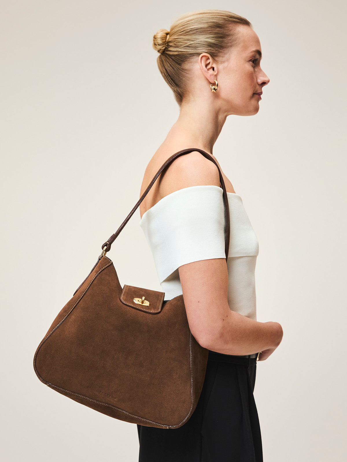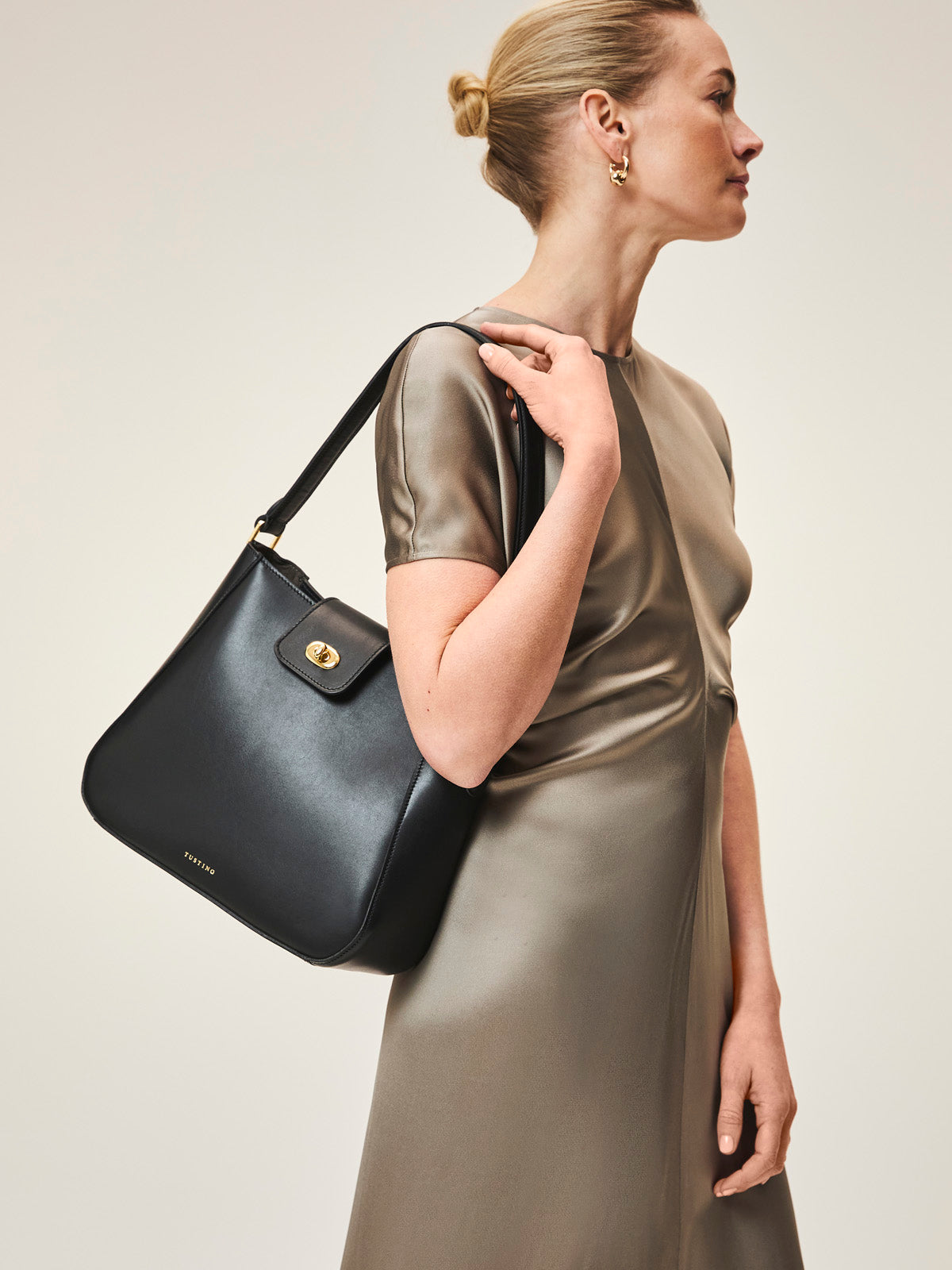 A softly rounded shoulder bag that is comfortably stylish and easy to wear.