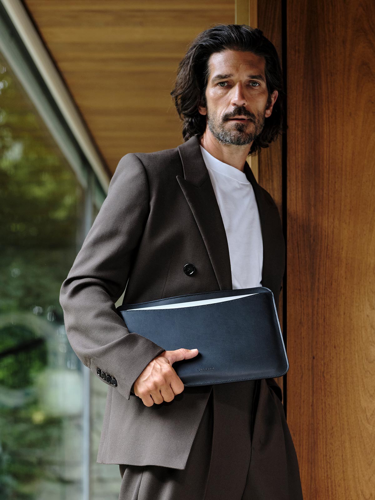 The grainy covers are made in Elba leather which features a tumbled, pebbled finish that is very soft and pliable. A top-end, fully vegetable-tanned leather, it burnishes beautifully with use, each rub and stroke delivering a rewarding polish from your everyday endeavours.