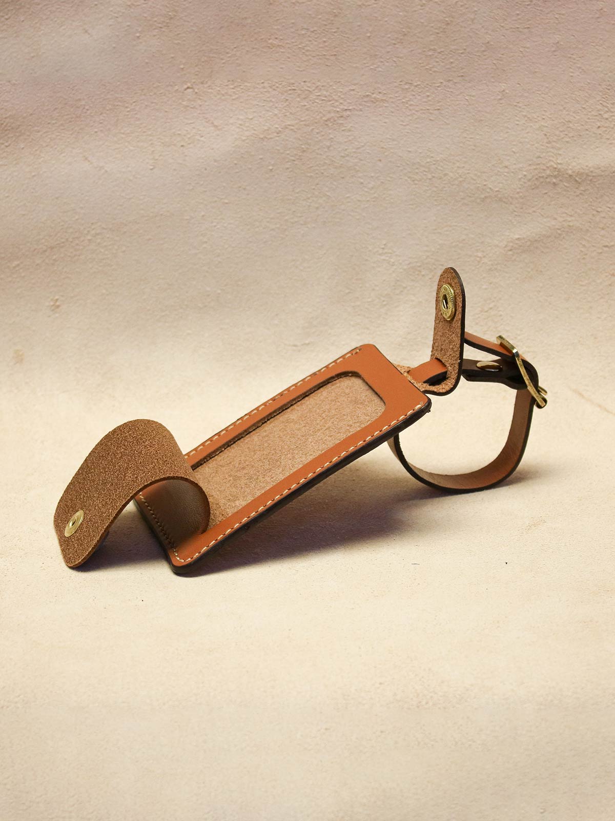 A smart travel essential, mark your luggage out with a sturdy leather luggage label containing you contact information for extra security.