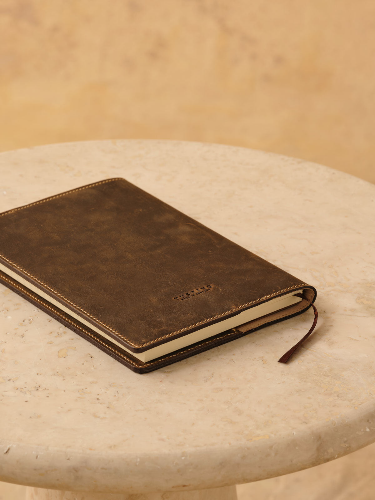 A refillable, A5 leather notebook cover for a little daily luxury. (Includes lined notebook.)