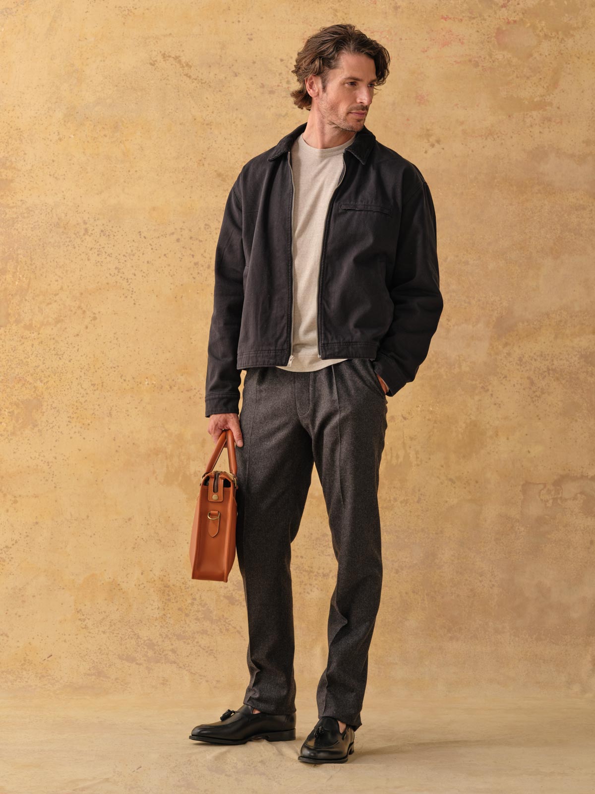 The Black and Tan Marstons are made in fully veg-tanned bridle leather. Firm and densely coloured but with all the beauty of the grain still on show, bridle is a strong leather which lends body to the briefcase and allows it to stand up. It will enjoy occasional care and polish like a good pair of shoes, but can equally well withstand being treated with no special regard. It will naturally polish with use and will acquire a fine patina over time.