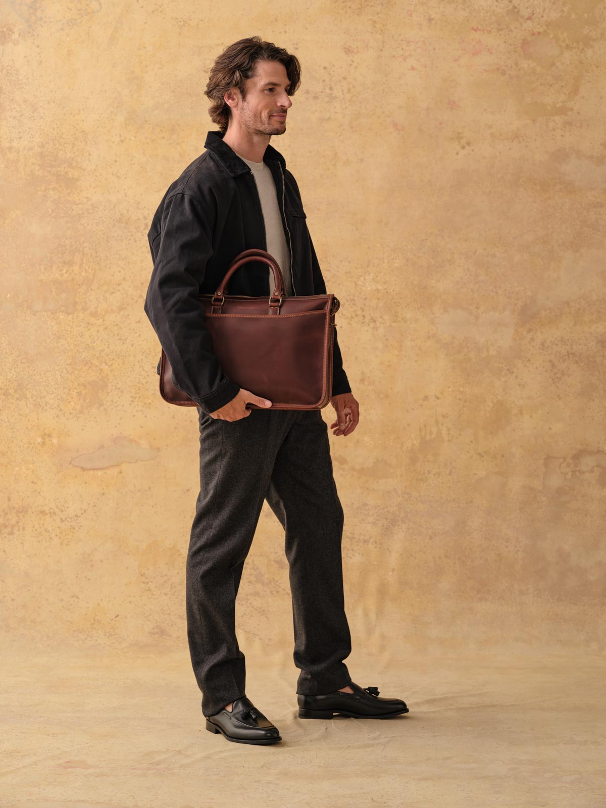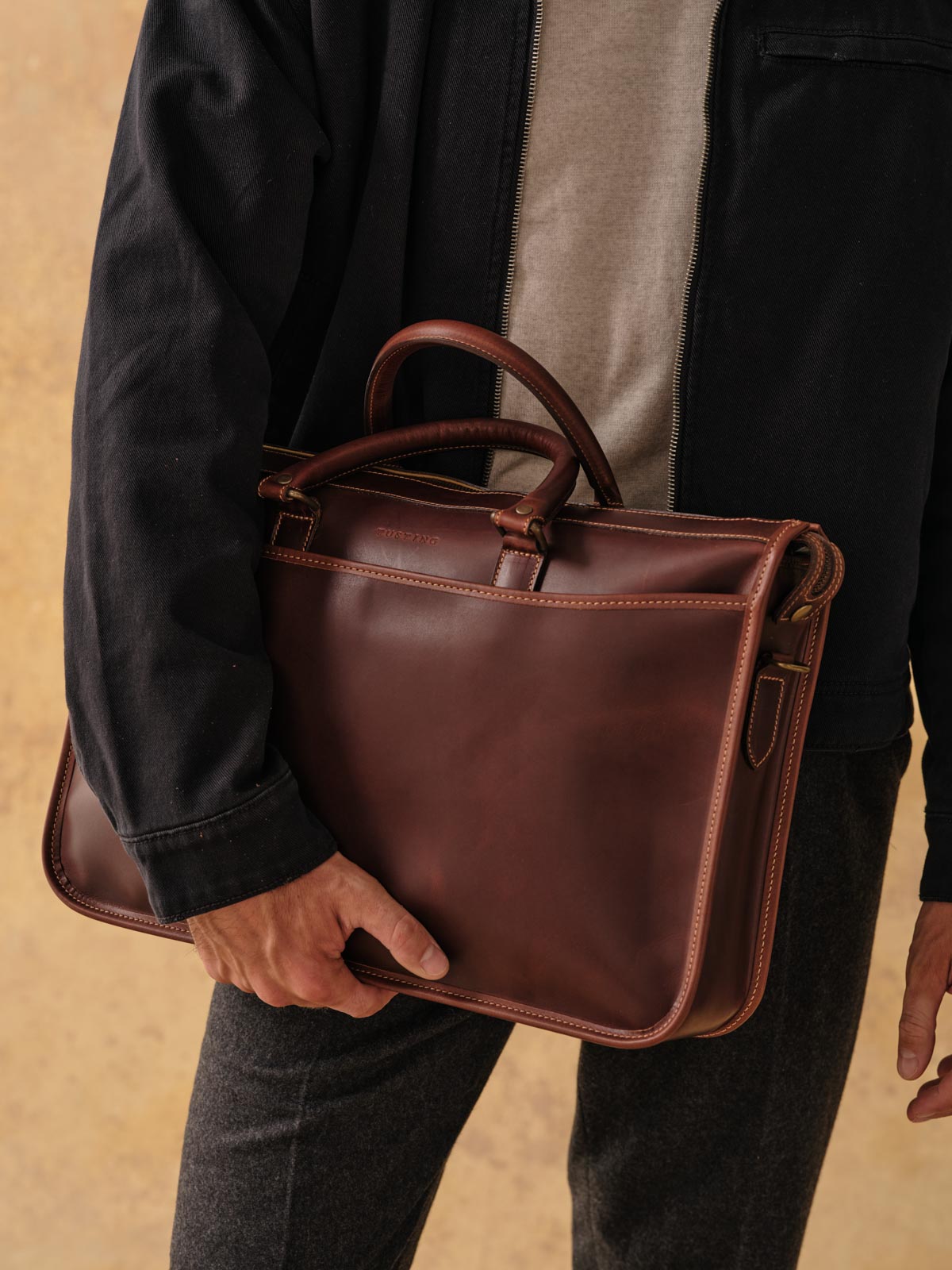 The large Marston is a finely crafted full grain leather briefcase with understated yet refined design.