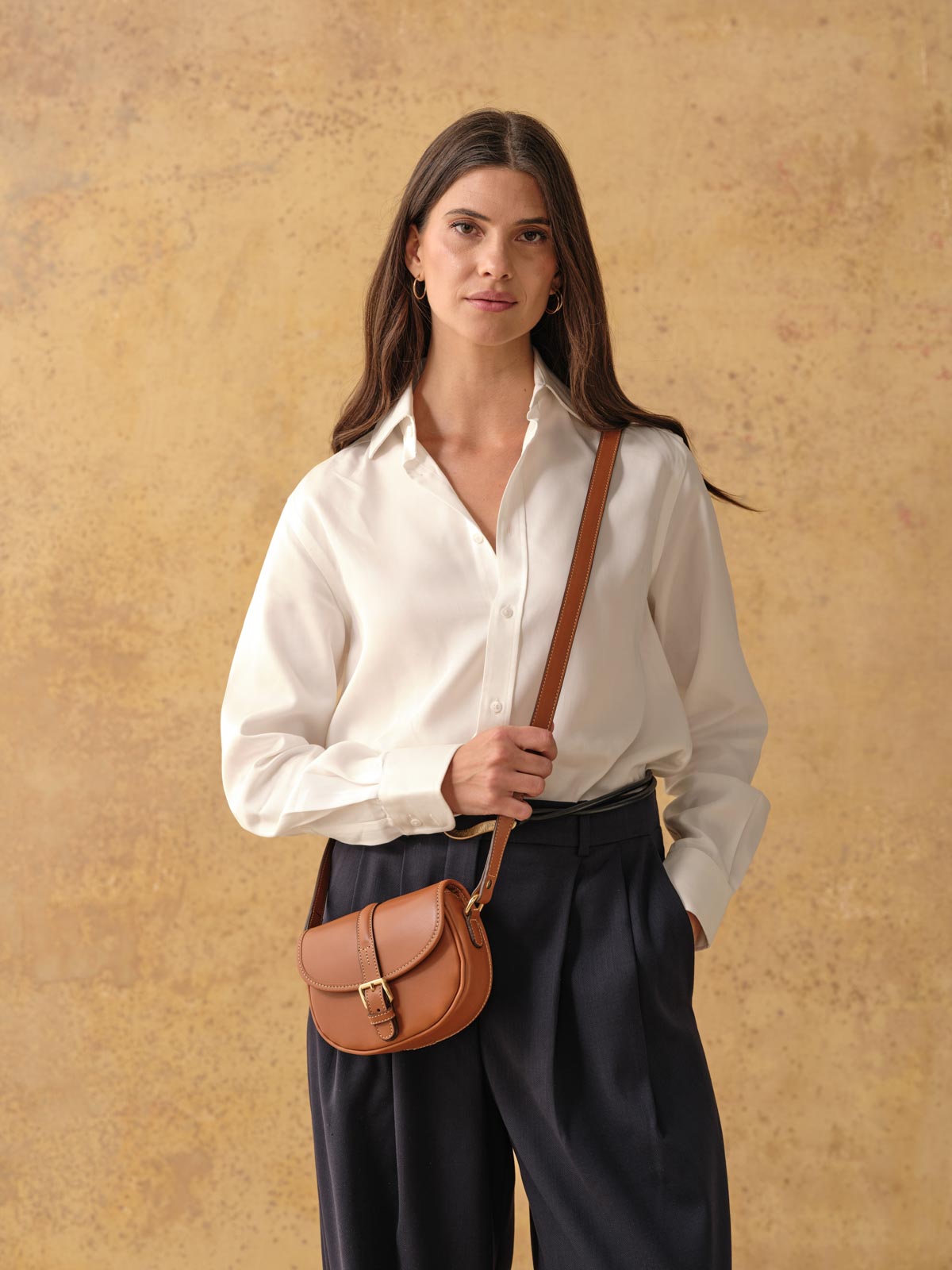A petite and perfectly formed little saddlebag-style bag, it is perfect for keeping your essentials close at hand when you’re on the go, just what you need for a hands-free day out. A comfortable cross-body with a hidden magnet under the buckle for convenient access.