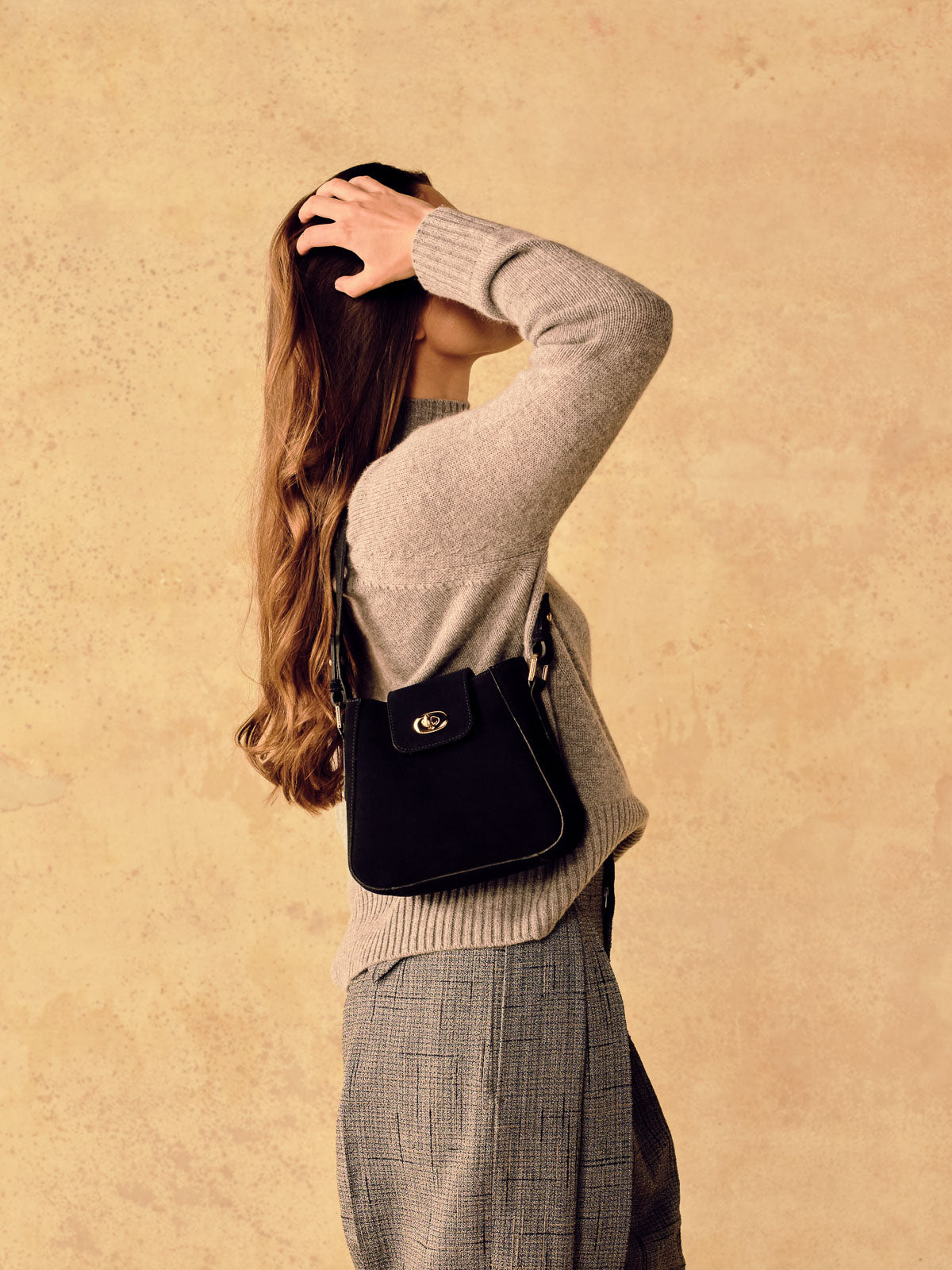 A small-yet-capacious shoulder bag made from smooth full grain leather or soft Italian suede, fully lined in micro suede, the Mini Hazel has a softly-structured, rounded silhouette that sits neatly at hip level when worn as a cross-body, or comfortably chic by the upper arm when worn on the shoulder with the shorter strap. The tapered design and secure turn-lock closure provide ample room for all your daily essentials, and the surprisingly spacious interior includes an additional slip pocket.