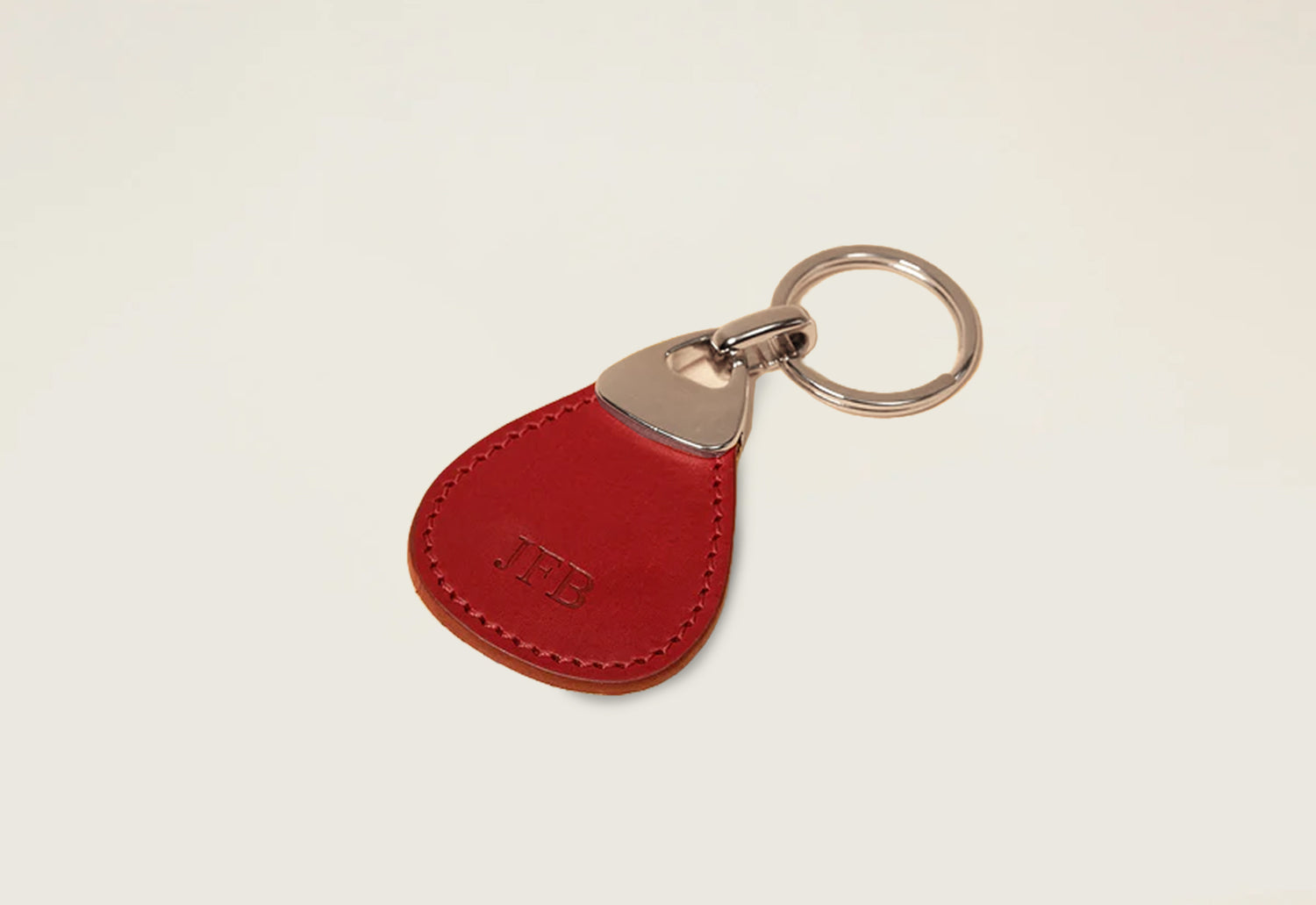 The peardrop-shaped key fob is made from two pieces of premium, full-grain bridle leather, which are stitched together before the edges are smoothed, stained and polished to blend in and stay smart for the longest time.