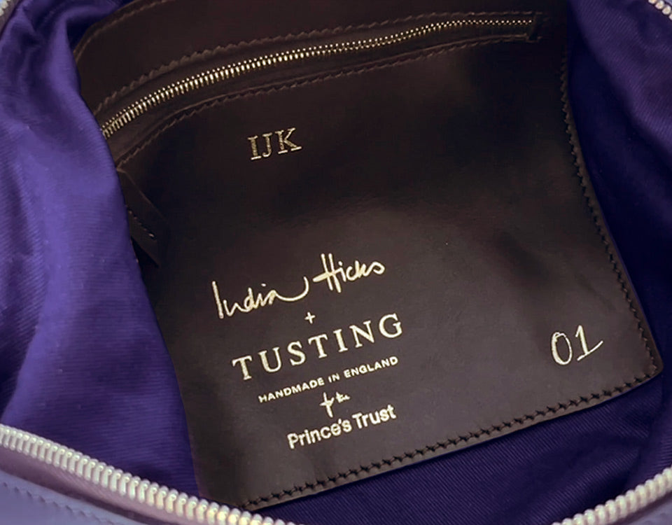 All Tusting bags are hand-crafted in our Lavendon workshop. By special order, we can make your bag even more unique by personalising it, or we can create a bespoke colourway from our set of leathers. So whether it is a personalised message inside the bag, embossed initials or a special colour combination, don’t hesitate to contact us.