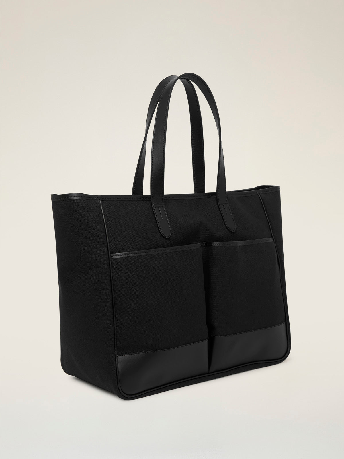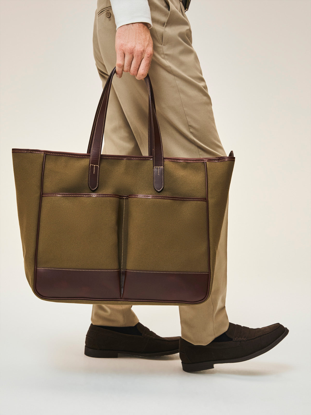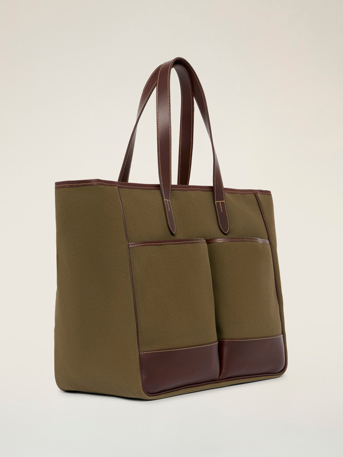 An oversized canvas and leather tote bag, the perfect alternative to a brief case, clandestine baby bag or all-day shopper and picnic bag.