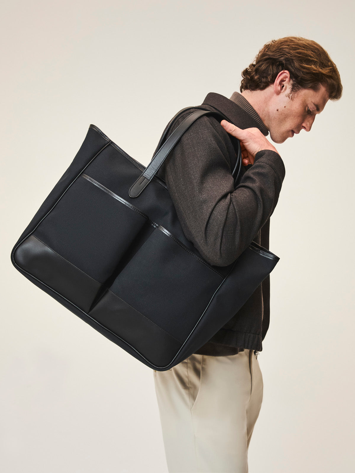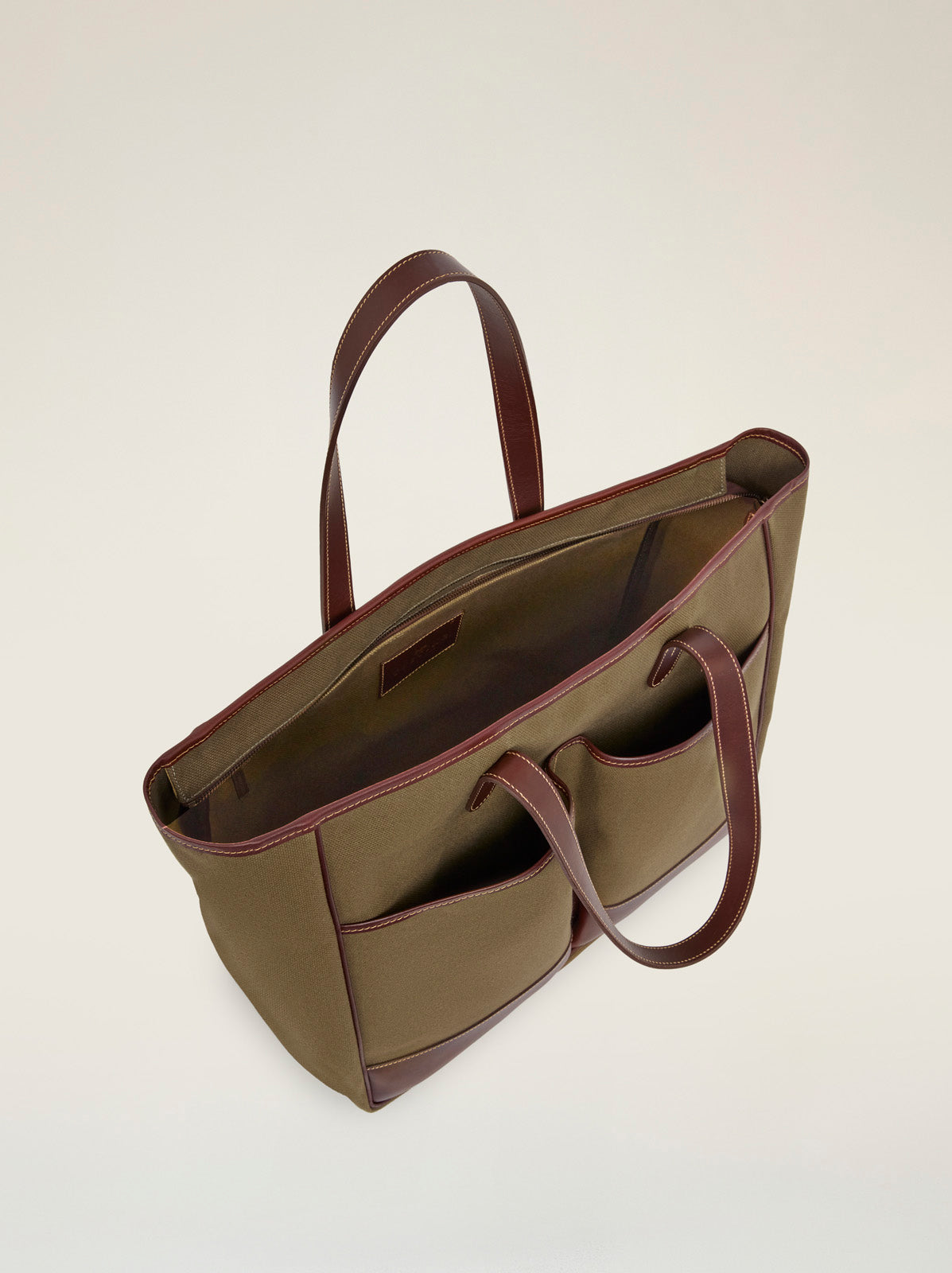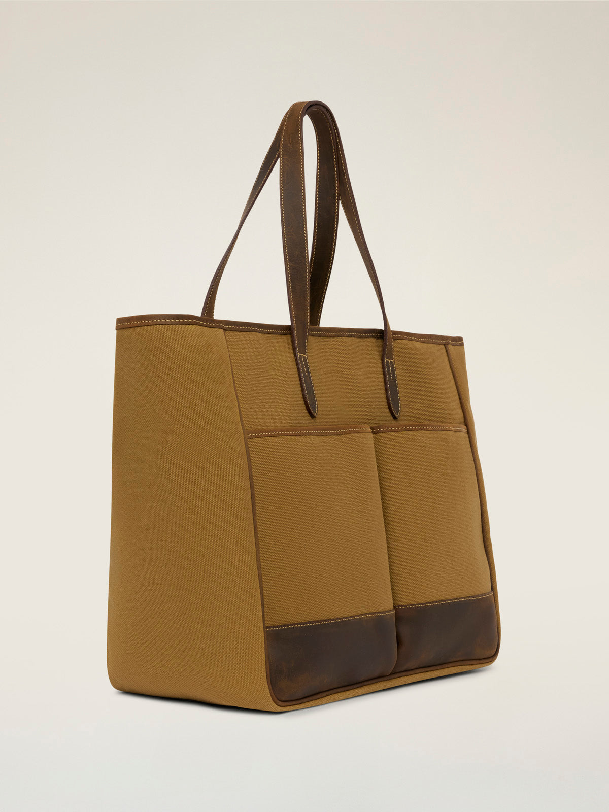 An oversized canvas and leather tote bag, the perfect alternative to a brief case, clandestine baby bag or all-day shopper and picnic bag.
