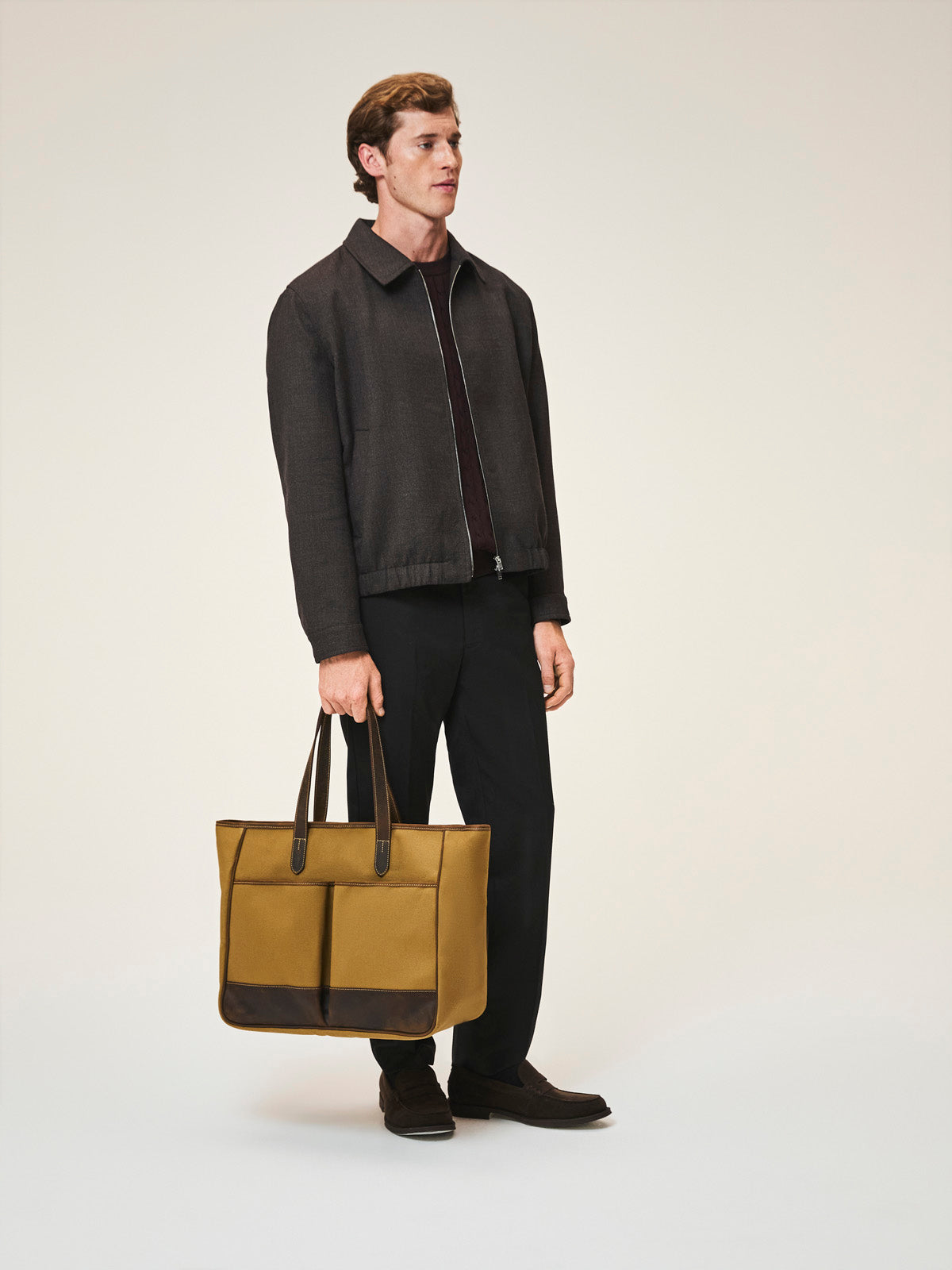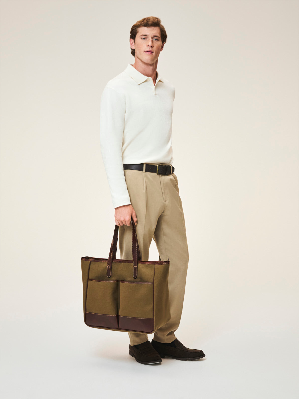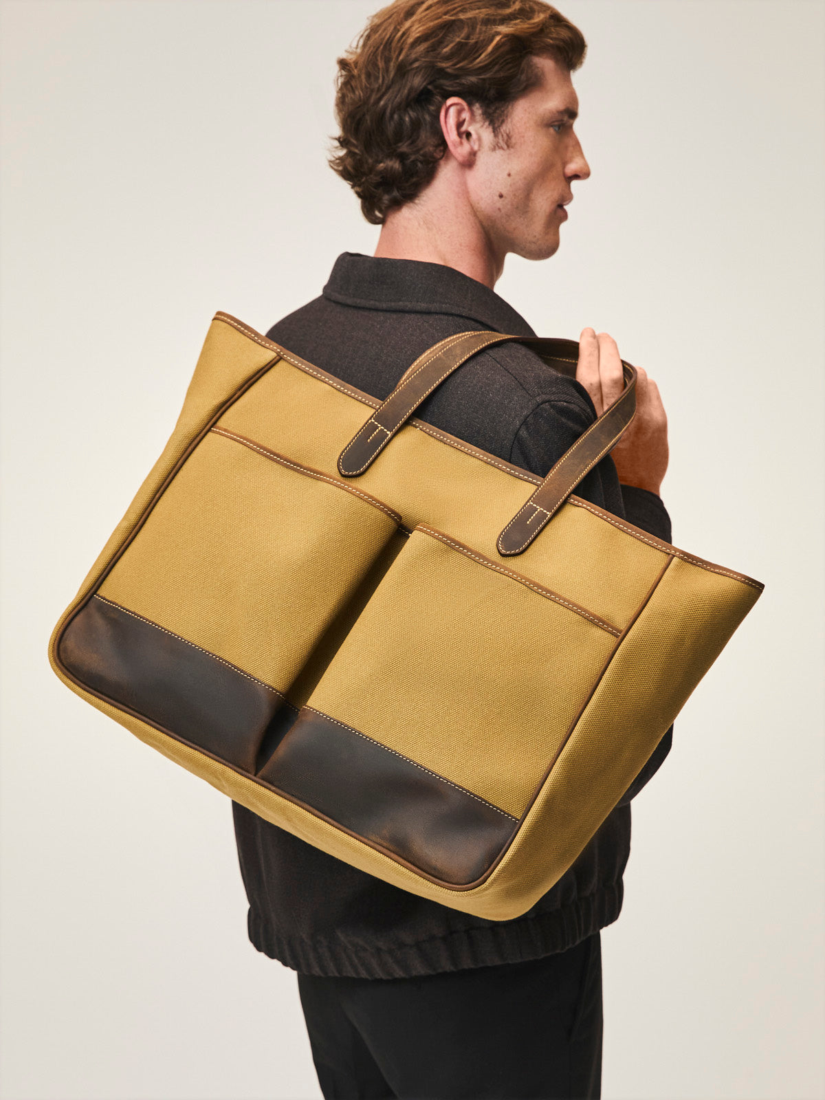 Durable canvas and leather trim are combined to craft this exceptionally light tote bag, designed to last countless journeys