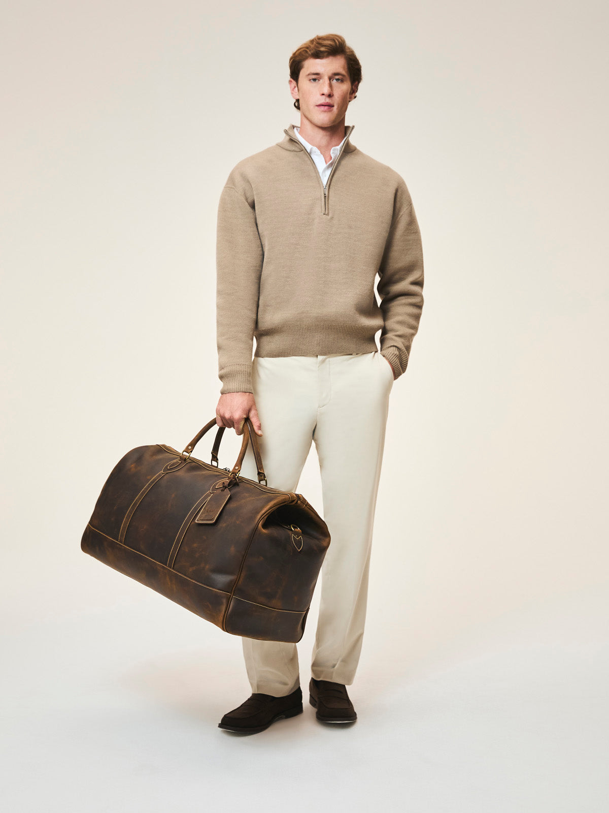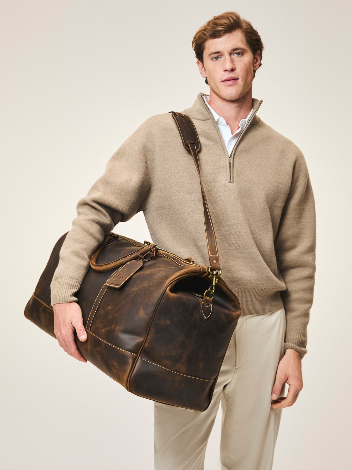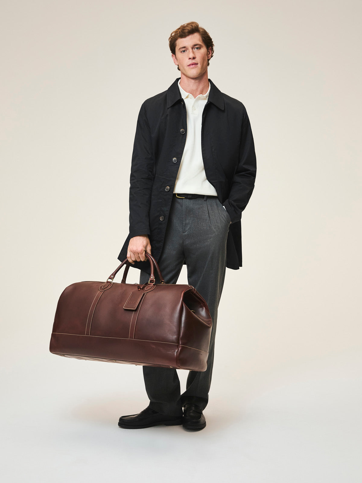 The large weekender is a classic English holdall, adding timeless elegance to your weekend travel.