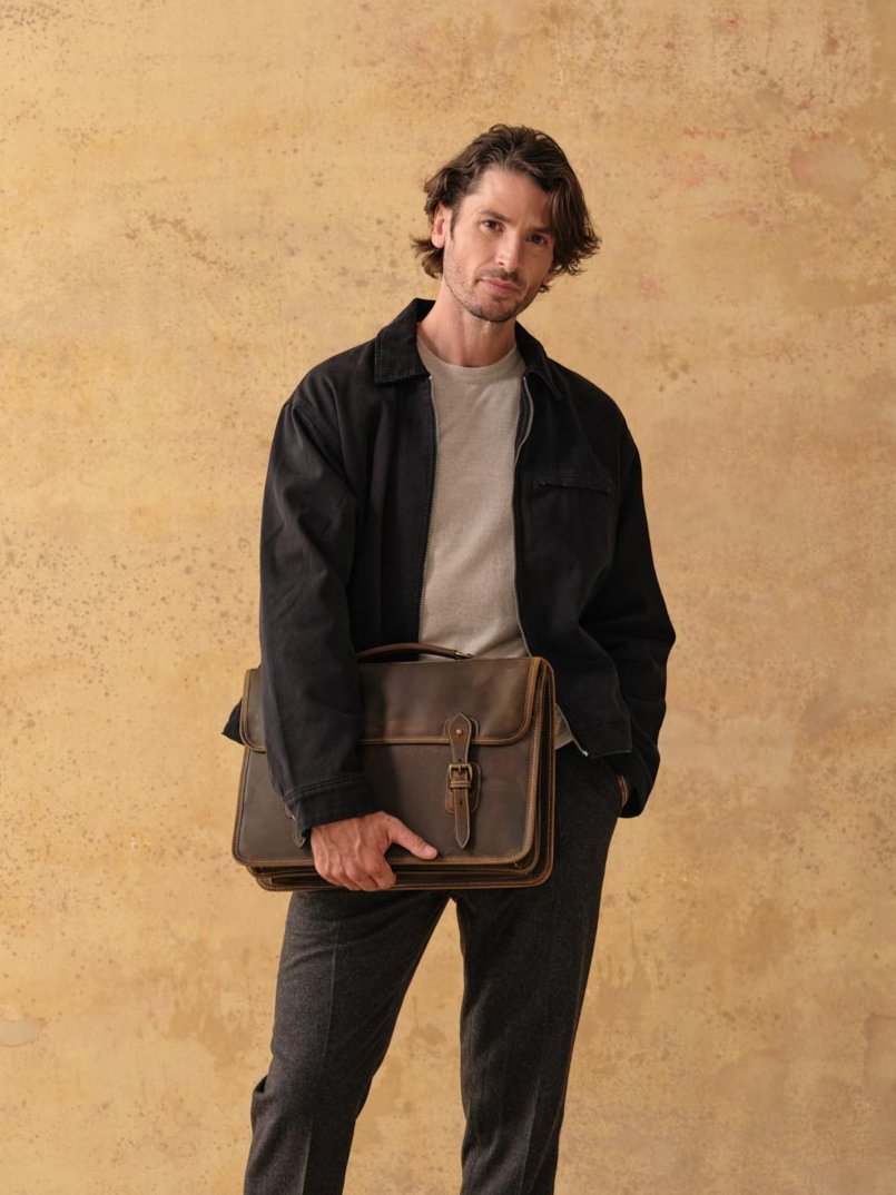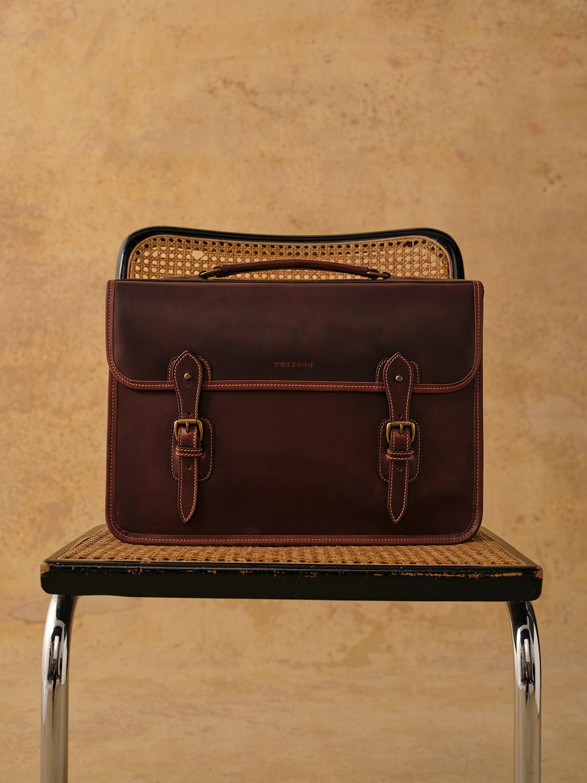 Traditionally styled with modern functionality and internal organisation. Stiffened walls and bound seams allow it to stand independently and maintain shape for years to come. Cleverly designed internal organisation features a padded laptop compartment and an array of pockets for your pens, wallet and notebooks. Made from a choice of two bovine leathers, the Wymington is engineered to be durable whilst maintaining its classic shape, this bag will only get better with use, developing a rich patina over the years.