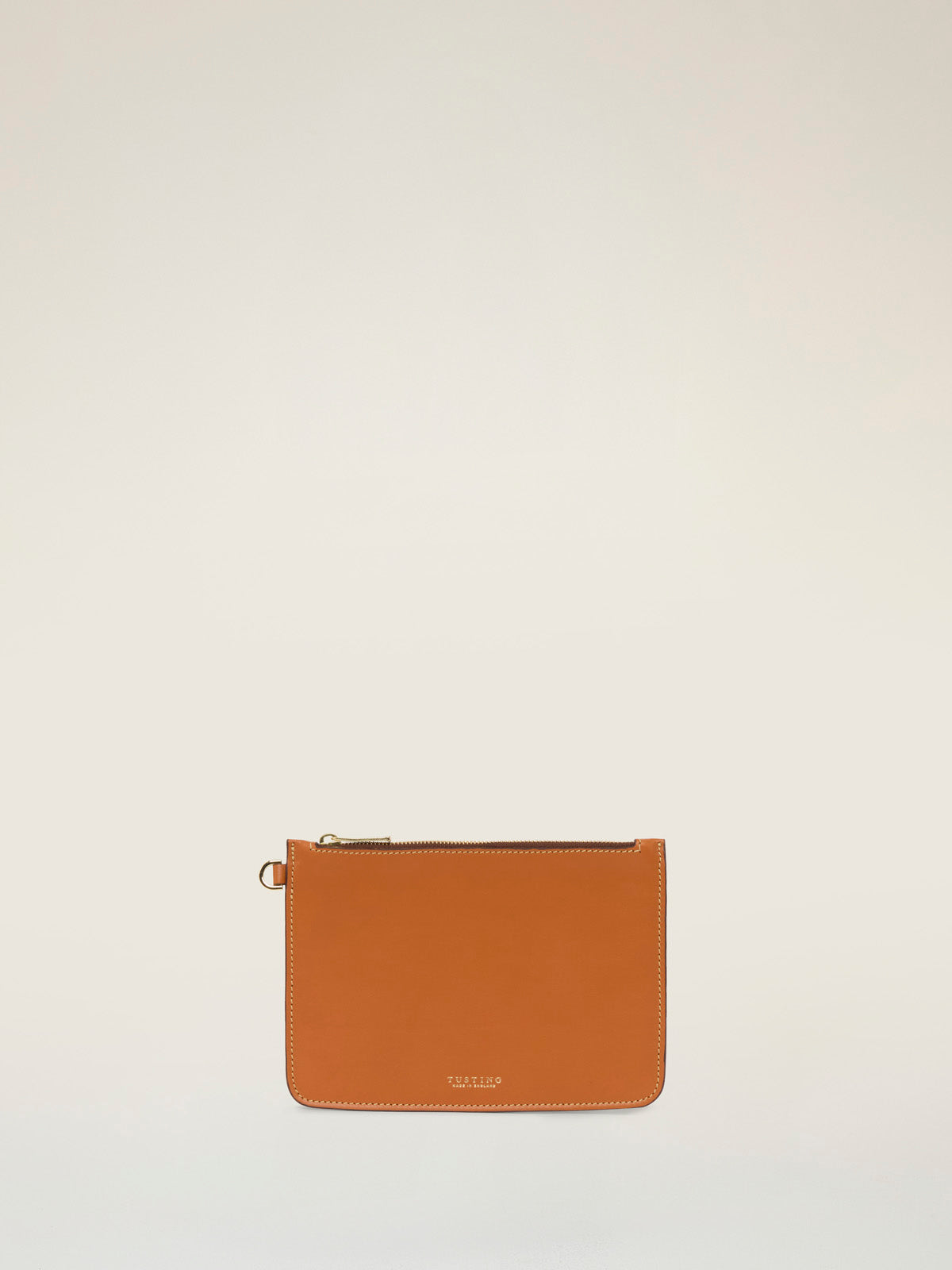 Designed to make your life easier, these zip top pouches are the ideal place to store your travelling documents, chargers or handbag essentials. Made from softly polished full grain leather, it is smart enough to wear it on its own as a classic slim clutch – the larger of the two sizes is perfect for your evening essentials. A dee-ring on the side of the pouch will allow you to attach it into a larger bag without it getting lost at the bottom, or use it to accessorise by attaching a charm or twillie.